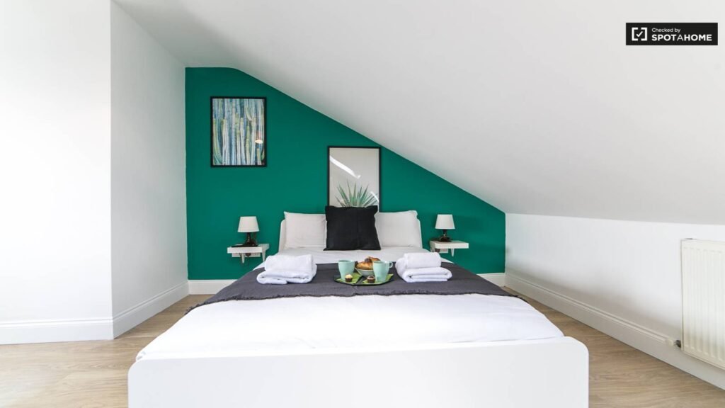 This bright studio apartment on Tubbs Rd in Willesden Junction offers a fully equipped kitchen and a combined living/bedroom area that has a double bed, sofa and TV. The bathroom in this charming flat has a shower and big mirror.